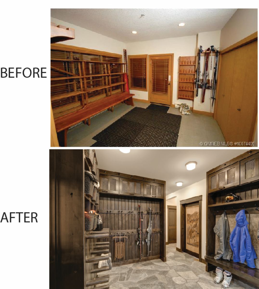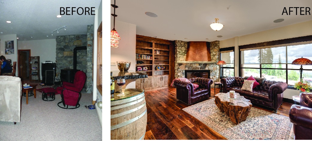 This outdated chalet with amazing views and great bones was completely renovated to create a custom masterpiece with high end finishes. With entertaining as the focus, the flow of the home was redesigned, all while keeping the rustic feeling the owners loved. The unused garage became a games room, the master ensuite was redesigned to include an incredible spa tub, and copper accents were added including an incredible bathtub. With all the amazing features in this chalet, it is truly unique. This chalet was the recipient of 3 Gold Tommie Awards in 2017.